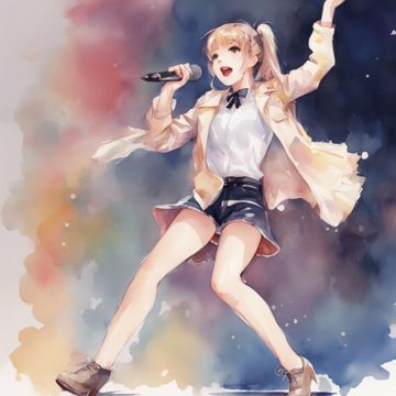 この水彩画は、ステージ上で輝く一人の**高生アイドルの瞬間を捉えています。 画面いっぱいに広がる彼女の笑顔は、観客を魅了し、心を温かくします。 彼女の衣装は、色鮮やかで細部まで繊細に描かれており、水彩ならではのやわらかなタッチが、 彼女の若々しさとフレッシュな魅*を引き立てます。背景には、ぼんやりとした光が舞台の雰囲気をさらに盛り上げ、 アイドルとしての彼女の夢と情熱が感じられる作品です。あなたの